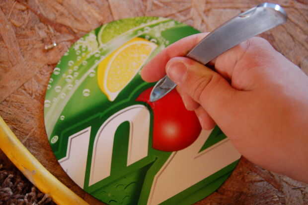 Utilizar el papel con los números como una plantilla y traza alrededor de él en la imagen de su uso. No olvide marcar el centro donde van las manos. Luego cortar con mucho cuidado. Quiere ser exacto. Para el agujero en el centro usted puede sólo cuidadosamente apuñalar hacia fuera con sus tijeras o un cuchillo.