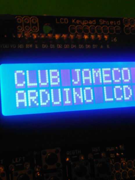 CLUB JAMECO ARDUINO LCD donde usted tendrá la posibilidad de manipular los botones: derecha, izquierda, arriba, abajo y Reset (RST)