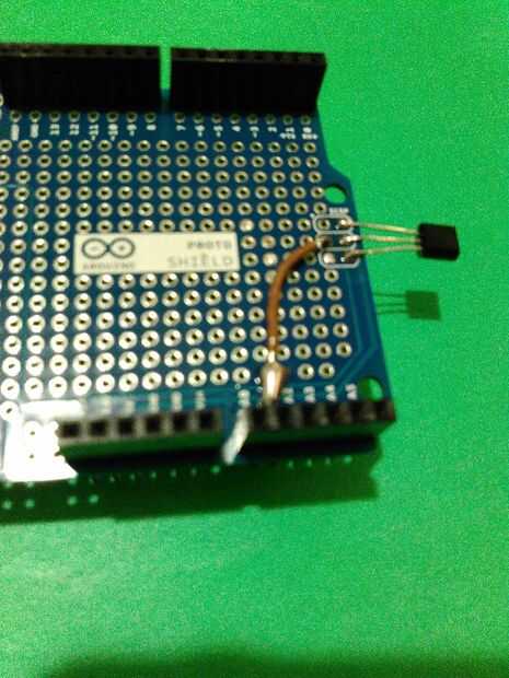 Ahora, usted va a instalar el sensor LM35 conectar a + 5V y GND su terminal izquierdo y derecho respectivamente visto en la parte delantera mientras que su extremo medio está conectado a A1. Observar el paso anterior.