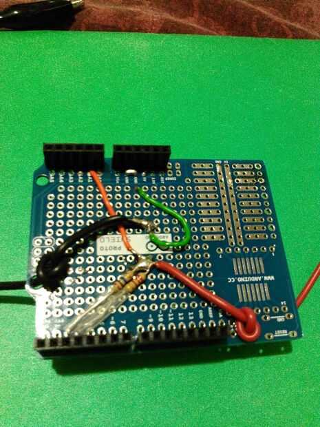 Para completar la pantalla, siga las instrucciones en el paso anterior. Es decir, conectar uno de los extremos de cada resistor a1 donde se dibujará el terminal positivo de la punta de prueba de este escudo. Ahora, conecte el terminal restante de la resistencia de 10MΩ a D2 mientras que el plomo restante de la resistencia de 220Ω a D3. Por último, dibujar el terminal negativo de la sonda de GND. Recordando que puede cortar el cocodrilo clips en la medida de la longitud de lo que deseas.