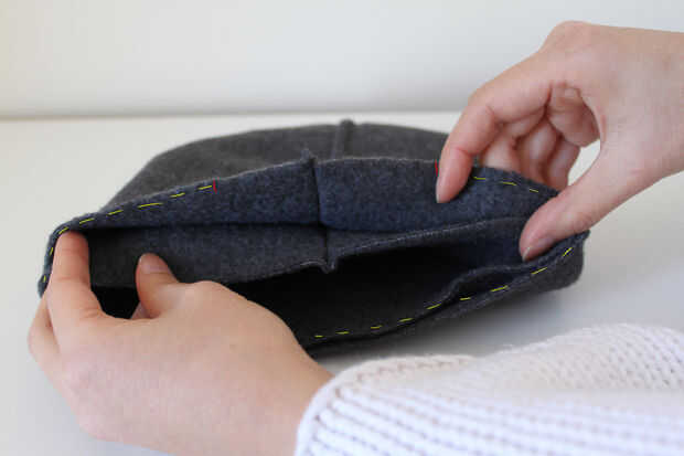 8. una vez hecho esto, voltear el sombrero del revés con la apertura que se ha cosido juntos.