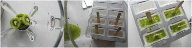 4. congelar durante 3 hora sacarlo, verter la leche de coco (o yogurt) en la parte superior y luego poner el palo en el estallido del hielo (esta forma puede mantener el palo recto).