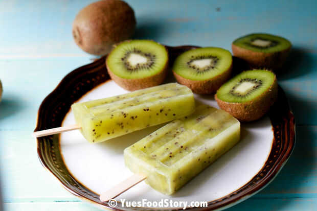 Y si eliges kiwis que son lo suficientemente maduras, no necesita demasiada azúcar/miel, jugo de manzana 100% también agregará mucho dulzor al ice pop sin agregarle azúcar extra.