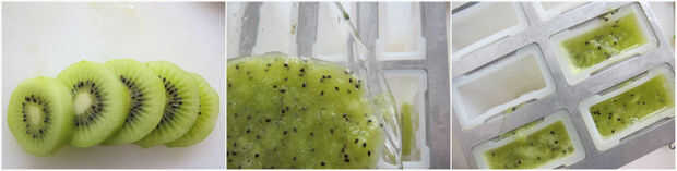 1. pelar los kiwis y guarde algunas rebanadas gruesas (del número de cortes sólo debe igual al número de estallidos del hielo que le gustaría hacer). No comer mucho kiwi durante este paso (muy importante).