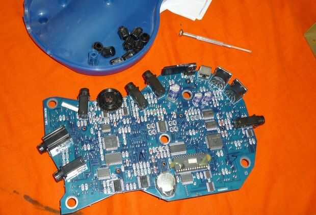 También hay 5 tornillos manteniendo el circuito conectado a la cubierta plástica superior, que realmente no necesitan ser removidas, a pesar de que han estado en las fotos.