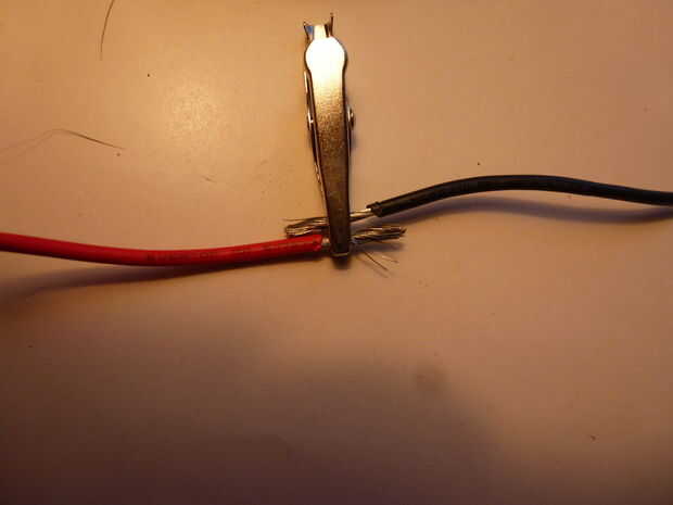 Método de pinza / resistencia: baja- el método de la pinza de cocodrilo es el método más débil descrito en este Instructable, pero es perfecto para las conexiones rápidas y temporales. Capacidad de los cocodrilos para encajar en casi cualquier lugar es muy útil no solo conectar los cables, sino también a cosas pin abajo y levantar cosas. Lo que usted necesita: un paquete de cocodrilo clips (disponible en RadioShack, no es la clase que ya está conectada a los cables), dos cables con despojado extremos.