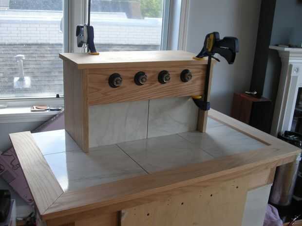 Después de que la madera tuviera tiempo para secar, decidí construir una espalda que estaba en las bisagras en caso que necesitaba para llegar a las líneas de cerveza. Esto fue bastante fácil. Corta un trozo de madera con el tamaño de la torre. Luego utilice una sierra circular o sierra de mesa para cortar por la mitad otra vez. He instalado 2 bisagras y una manija para permitir el fácil acceso a las líneas. No te olvides de aislar la parte de atrás así. Puse 2 capas de tablero de la espuma en la parte posterior también.