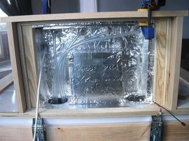 Después de cortar el Monte agujeros la torre en la cubierta con soportes en "L" conectados al 1 x 1 entradas. Después de haber montado la torre vas a construir un bloque pequeño del tablero de la espuma que va a servir para ayudar a crear un túnel de viento dentro de la torre. Había montado un ventilador de ordenador debajo del orificio que no tiene líneas de cerveza a través de él. No desea enfriar todo el espacio en la torre, así que por que creación de una pequeña caja, el aire fluirá en un lado y por donde entran las líneas. Esto mantiene las líneas de cerveza fría y reduce la espuma.