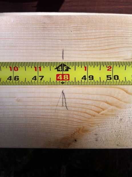 (2) 33"- patas delanteras (esperar para medir estos hasta después corta las tablas de 28". Tienes un trozo bastante grande de cada uno para esta obra.)