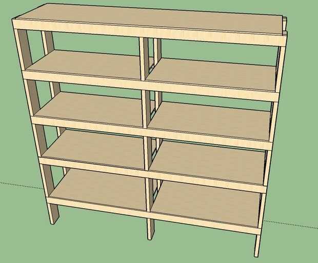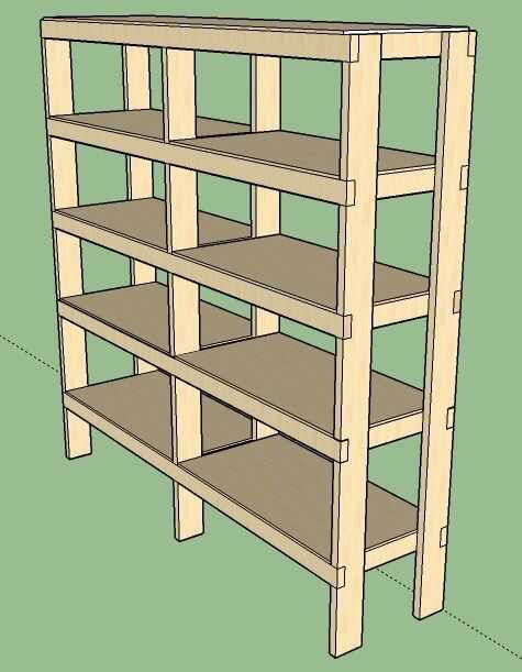 Que guardado recientemente la mayoría de mis cosas en recipientes de plástico y que me hizo soñar utilizando el diseño de la mesa de trabajo para construir una estantería. Lo hice en SketchUp primero esta vez, así que pensé que le daría un pequeño adelanto de la construcción. Ahora es grande construido y de trabajo, aunque he tardado hacer otro instructable sobre ella. Cambié todas las juntas horizontales hacia fuera de 2 x 3 y la vertical son 2 x 4. Esto había guarda una gran cantidad de peso y costo, pero es extremadamente fuerte e independiente. La unidad es de 8 pies x 8 pies x 2 pies. Los estantes se son madera contrachapada 1/2. Estén atentos para el instructable.