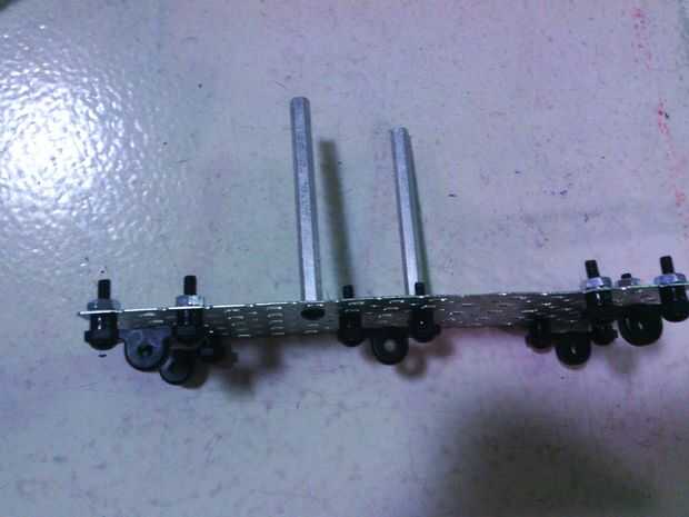 Para construir un trineo, 1 º necesita una placa plana, entonces haz 4 rodamiento plana y conecte a las 4 esquinas de la placa plana usando 2 espaciadores, 2 tornillos largos y 2 tuercas para cada lado. También debe adjuntar 2 del eje de 5 pulgadas en dos agujeros abiertos alrededor de la mitad de la placa plana. (son los lugares donde le pones el peso en).
