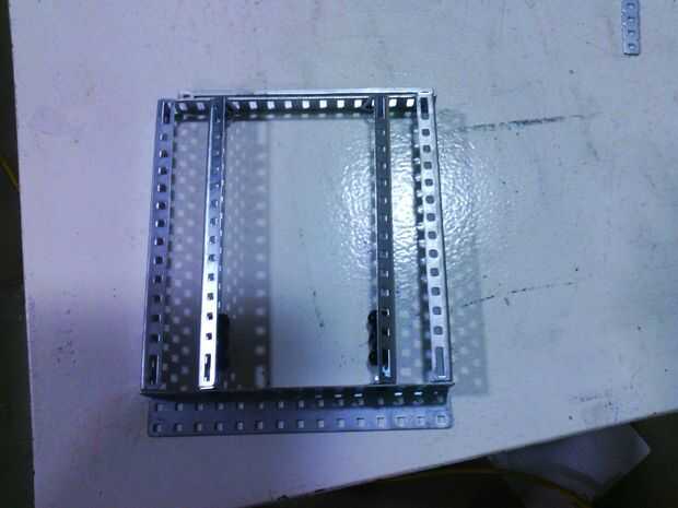 Crear la base con 4 largueros de chasis, barra de ángulo 15-agujero y un tope de chasis. Utilice 8 tornillos y 8 tuercas para apretar los rieles.