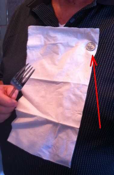 La perra puede dejar look Techie usando una servilleta para el almuerzo