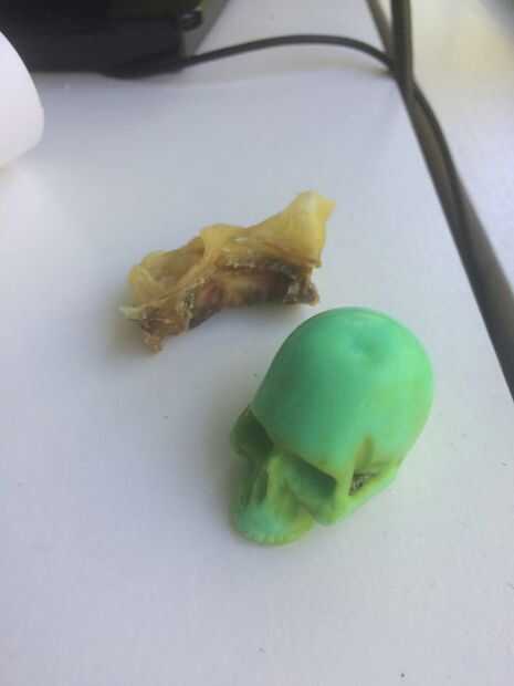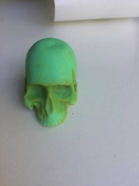 El tamaño del objeto sólo depende de tu paciencia que supongo. Las fotografías o vídeos que he visto de moldes de látex líquidos son objetos relativamente planos, como un botón o un encanto. Esto me hizo un poco nervioso a probarlo en mi estatuilla de cráneo. Al final del día solo toma mucho más tiempo para hacer un molde si su objeto es más 3D.