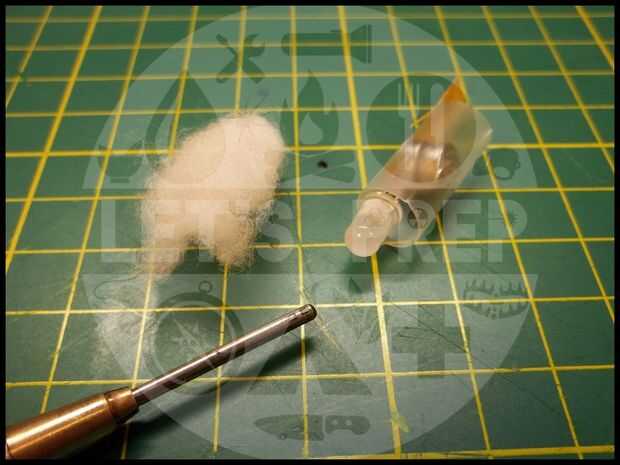 2. Inserte una pequeña cantidad de algodón en el lado del LED y compactarla