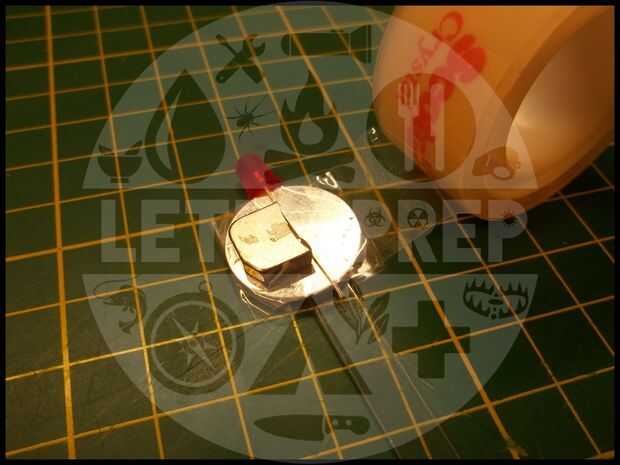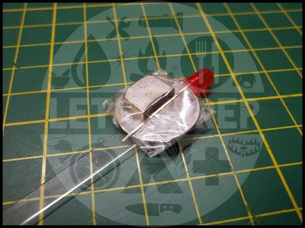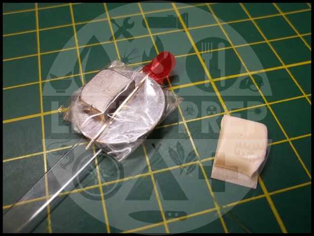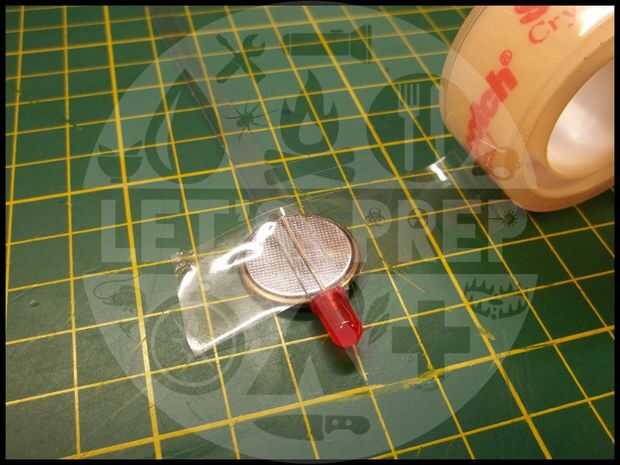 1. Envolver 2-3 capas de cinta adhesiva alrededor de la batería y LED