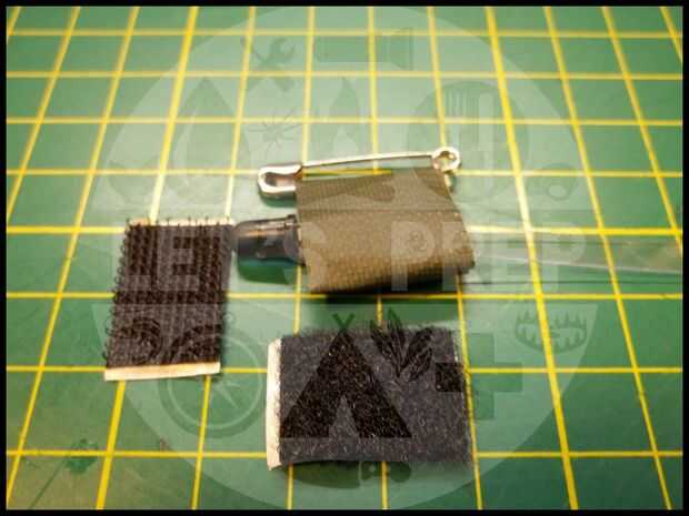 2. Pegue la cinta Velcro (ganchos y bucles) a ambos lados del Taggie