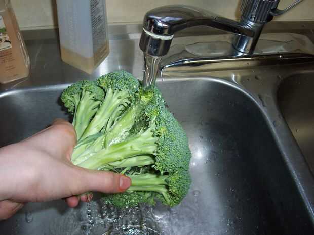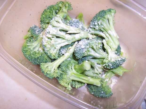 Lavar el brócoli, luego coloque en el recipiente y poner un ajo en polvo y sal en. Vierta en el agua.