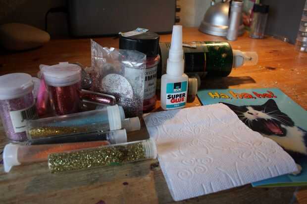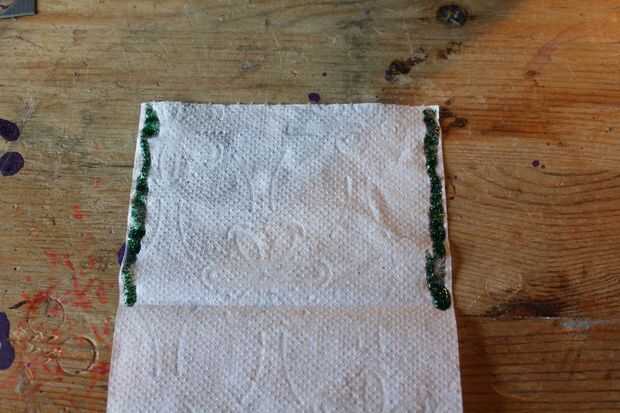- Doblar como una pequeña bolsa y pegue dos de los bordes con el pegamento débil (convenientemente lo suficiente el pegamento más débil que pude encontrar ya tenía brillo en él: D)