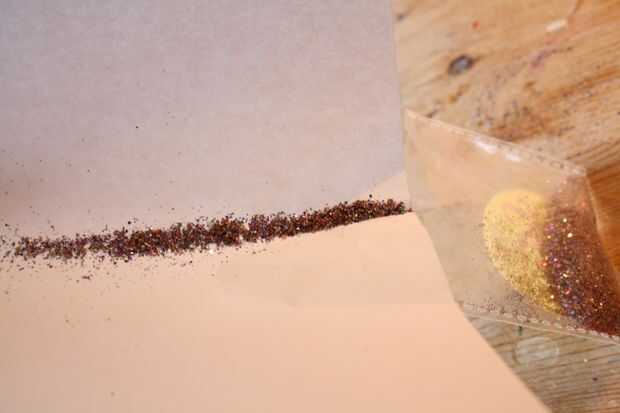 Cuando estás trabajando con tu brillo y espolvorear sobre el pegamento o lo que usted necesita, hacerlo sobre un cuenco y golpee suavemente lo que necesita glitterfying para bajar el brillo en exceso.