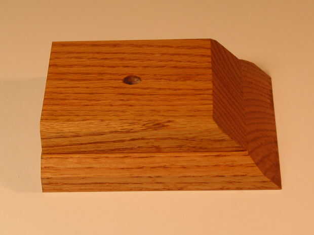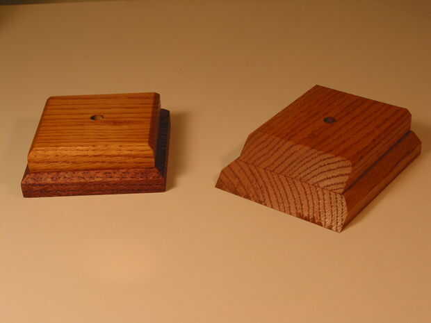Las fotos de este Instructable son ejemplos de dos diseños diferentes de base. Cada base consta de dos capas de 3/4" espesor roble madera dura pegados juntos. Las dimensiones proporcionadas son para la capa inferior de la base solamente. La capa superior puede dimensionarse según el gusto. Base #1: Es un escalonado, Base # 2: Es un escalonado, 5 1/4 "x 4 1/2" base rectangular con bordes biselados y una cara diagonal de 45 grados para facilitar el montaje de una placa grabada.