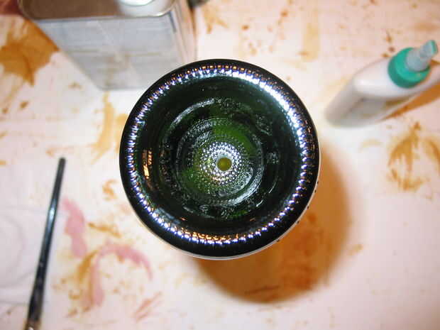 ¿Por qué perforar la parte inferior de la botella en vez de la espalda? Primer y primero se es mucho menos ocasión de la botella se agrieta y ser arruinado. En segundo lugar, será mucho más fácil encaminar el cable de alimentación a través de la botella. Por último, tener el cable de alimentación sale del base sólo parece mejor.