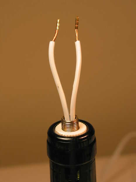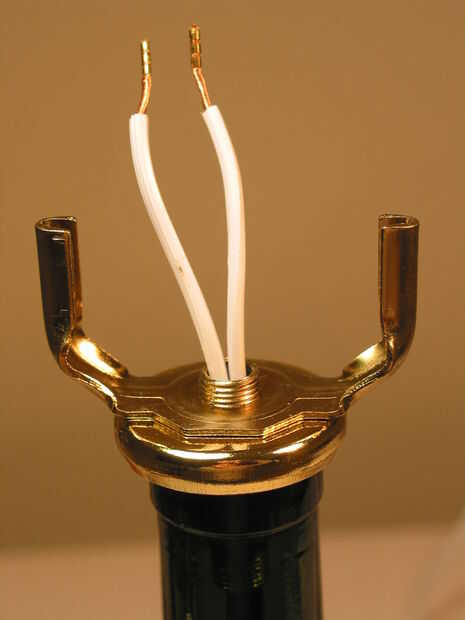- Conecte los cables al ensamble de base (el alambre neutral, acanalado se conecta al tornillo plateado y el alambre liso se conecta al tornillo de latón, según las instrucciones). Asegúrese de apretar firmemente los tornillos.