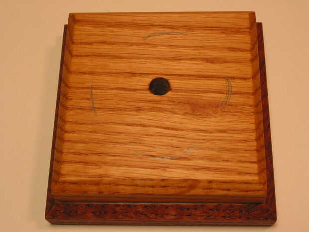 - Coloque la botella en la base y use un lápiz para marcar su ubicación (ocultar las marcas inclinando la botella ligeramente para permitir que el lápiz se marca para colocarse debajo de los bordes exteriores de la botella).
