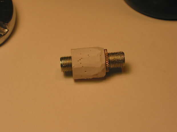 - Nota: A menudo los adaptadores en el kit de la lámpara no cabrá la botella sin alguna modificación. Como se ve en las fotos, uno de los dos adaptadores usados para este instructable ha sido cortado con un cuchillo para que se ajuste apropiadamente la botella. No gran cosa pero un poco de dolor. El adaptador no necesita estar super apretado pero el ajuste debe ser relativamente ceñido.