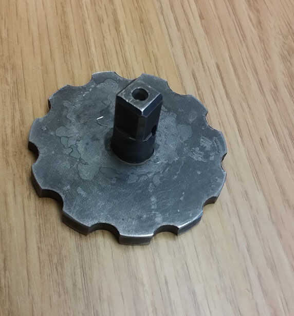Agrandar agujero a 1/2 pulgada. eje de empuje eje agujero y soldadura nuevo a perilla.