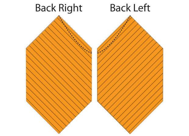 Para diferenciar la parte de atrás de la parte delantera, curva el espalda escote marcando 1" del centro de la espalda. A continuación, dibuje una línea curva desde la marca del centro de la espalda a la parte superior de la V. Corte en línea.