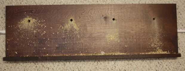 Taladre los orificios para los pernos de carruaje según las mediciones efectuadas en el último paso.