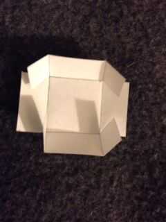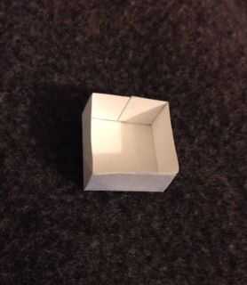 En cada plaza, doblar a lo largo de las líneas azules punteadasy líneas rojas antes de cortar a lo largo de las líneas rojas. Luego pegar como se muestra arriba para obtener tapones que parecen cajas de base cuadrada sin tapa.