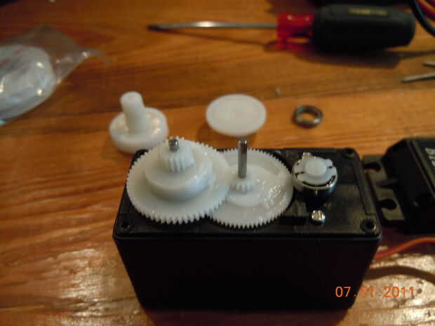 El servo es técnicamente no un servo continuo, pero tan increíblemente fácil de convertir. Ver fotos...