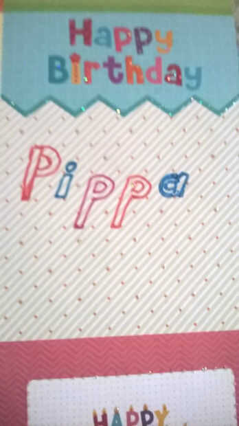 He encontrado una página en el libro de los papeles que tenían algunos diseños de cumpleaños. A continuación, simplemente un nombre de esquema se basó en una de las imágenes y colores con plumas de gel.