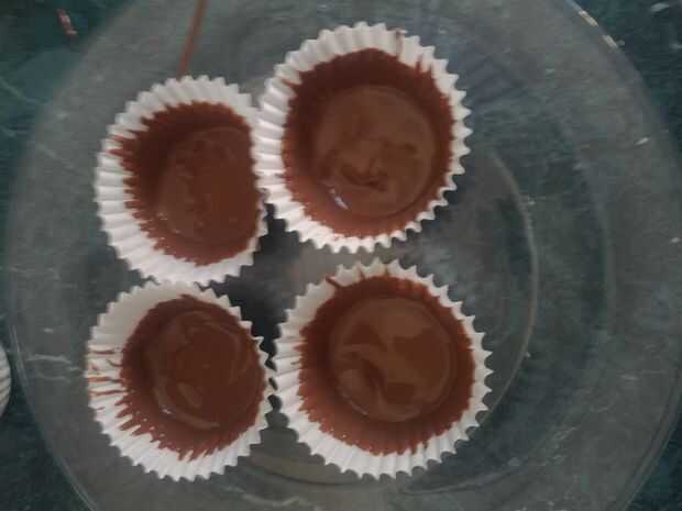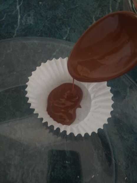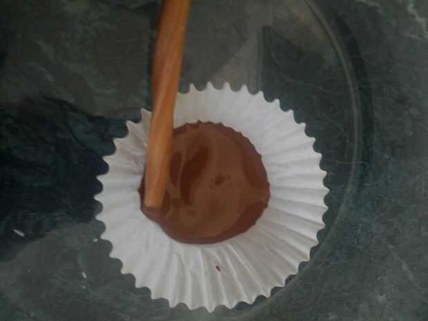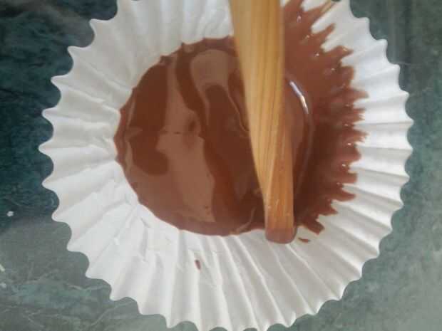 Ir hasta aproximadamente 1/2 de chocolate en el tazón de fuente se utiliza para arriba