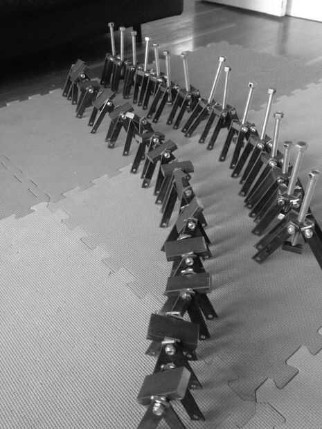 Las abrazaderas son ensambladas con 2.5 estándar "1/4" 20 hardware con tuercas de seguridad de nylon. Se utiliza un perno de 1/4" rápidamente abrir y cerrar las pinzas. El 1/4" perno está hecho de un tornillo de 3.5" 1/4 20 con los peldaños cortados y los bordes chaflanados. Simplemente se desliza en el agujero necesario y la presión de sujeción mantiene en su lugar. Guarde el pin en uno de los orificios no utilizados cuando no esté en uso.