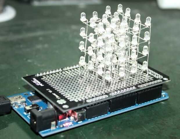 En este proyecto del cubo del LED, verá que el cableado de punto a punto ProtoBard es muy claro.