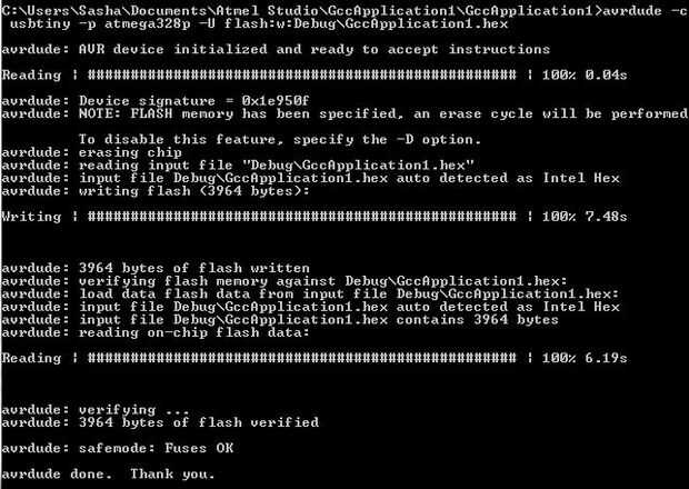 Tenga en cuenta que en la captura de pantalla de avrdude, showns mi nombre de archivo como GccApplication1 en la carpeta de depuración. Cambiar esta ruta de lo que nombre al archivo y donde pusiste el archivo. De lo contrario, utilice el comando que se muestra a continuación: