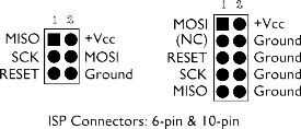 Como se mencionó en el último paso, necesita conectar el programador una manera ISP al microcontrolador. Una foto del pinout de la ISP se muestra y puede ser emparejada a los pines siguientes.