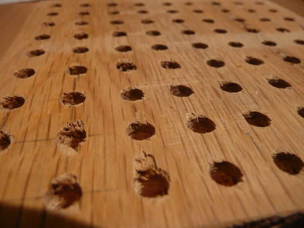 Esta tabla con 16 agujeros será la plataforma para su soldadura.