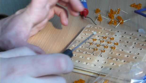En los lugares donde los ánodos están cruzando los cátodos, queremos para asegurarse de que las piernas se tocar. (ellos probablemente están tocando ahora) Para ello, obligando a un margen entre los ánodos y cátodos con el uso de un destornillador pequeño. Asegúrese de que dejar suficiente espacio, pero también ser bastante cuidado de no romper nada.