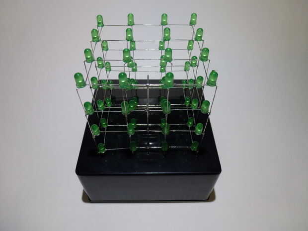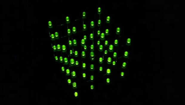 En este tutorial te mostraré cómo hacer un 4 x 4 x 4 LED cubo por alrededor de $15.00. El cubo tiene 64 LEDs verdes que conforman la layers(positives) 4 y 16 columns(negatives). Todos estos están conectados a un Arduino Uno. Un Arduino es un microcontrolador de una placa, previsto hacer más accesible la aplicación de objetos interactivos y entornos. El hardware consiste en una placa de hardware de código abierto diseñada alrededor de un microcontrolador Atmel AVR de 8 bits, o un brazo de 32-bit Atmel. Programan code(sketches) para el Arduino Uno para controlar los LEDs individuales para mostrar las pautas de este cautivante espectáculo de luz escritorio.