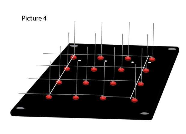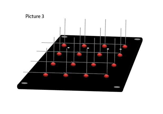 Paso 3) ahora tendrá que cortar dos trozos de alambre sin aislamiento sólido y enderezarlas. El cable debe ajustarse a la longitud del cubo. Estos trozos de alambre conectarán las 4 filas de LED para formar una capa. Coloque un cable después de la primera fila de LED y un cable justo antes de la última fila de LED. (Imagen 4) No dude en cortar las patas restantes de los 4 cátodos.