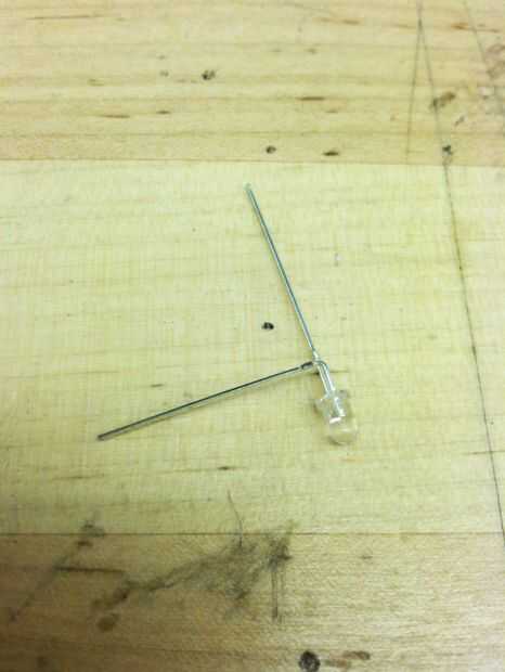 Paso 1) después de probar hacia fuera el LED necesita doblar cada pierna del cátodo en un ángulo de 90 grados. Mina doblado con los alicates justo debajo el quid poco cada pata del LED tiene. Esto mantiene cada curva con una longitud constante. (Cuadro 1)