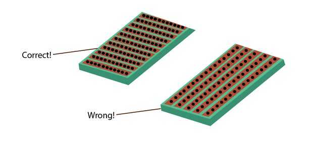 Para empezar a hacer tu circuito agarra tu placa perforada y resistencias. Corté mi tablero en tiras, por lo que sería más fácil meter 4 de los cables del 16 ánodo en él más adelante en lugar de meter todos los cables del 16 ánodo en él al mismo tiempo. Si utilizas la placa perforada con conductores de cobre Asegúrese de seguir los cables y accidentalmente no corte en la dirección equivocada. (Para referencia ver foto 4 y 5) Si los cables no están conectados no funcionará el circuito!