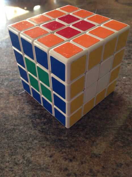 tuve un repuesto Rubik cubo colocación alrededor y parecía lamentablemente sin modificar. Lo que fue la parte fácil; No tengo ni idea de cómo resolver algo como esto.