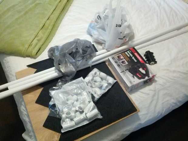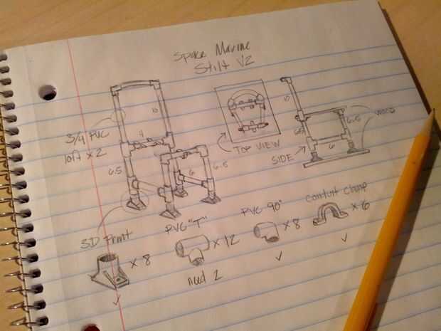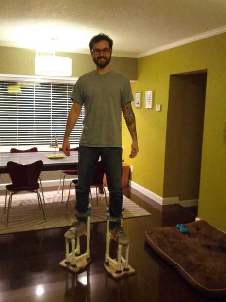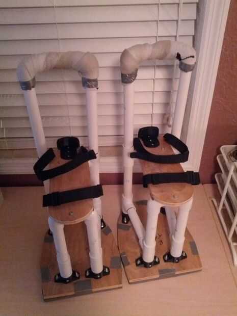 Probabilidades son usted está no de 7 pies de alto. El traje terminado, construido a la escala que utiliza, es de 7 pies de alto. Vas a necesitar pilotes. Hice mía de PVC, madera y unos zapatos viejos.