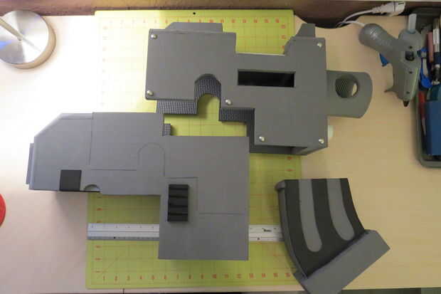 Marines Espaciales va a necesitar algunas armas. Al parecer, en el sombrío futuro oscuro... es sólo guerra. 3D imprimí yo mismo un animatronic Powerfist (que es un tutorial entero sí mismo) y un perno pistola fuera de la misma espuma como el traje. Hay muchas armas disponibles aunque y pepakura plantillas están ampliamente disponibles para todos ellos. Que te diviertas eligiendo!