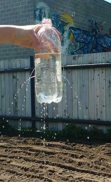 Si han sembrado plantas en el suelo, simplemente empujar los agujeros en un agua de plástico de 2 litros o en botella pop (que se han limpiado). Este entierro en el suelo entre dos plantas (Asegúrese de mantener el cuello de la botella sobre el suelo. Llene la botella con agua (por el cuello) y drenará lentamente en el suelo, mantener las plantas bien regadas. Rellene según sea necesario.